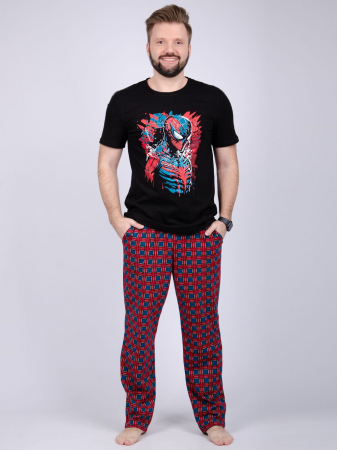 Пижама мужская: футболка прямого кроя с короткими рукавами с принтом на полочке, брюки прямые, с карманами в боковых швах.