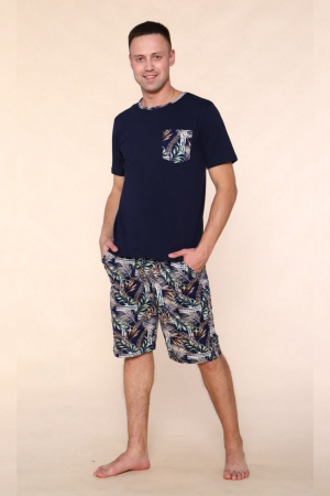 Дизайн: Акцент на шортах с набивным рисунком в виде листьев папоротника. Футболка однотонная темно-синяя (в цвет принта).