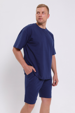 Мужской костюм трикотажный, футболка оверсайз + шорты до колена с карманами.