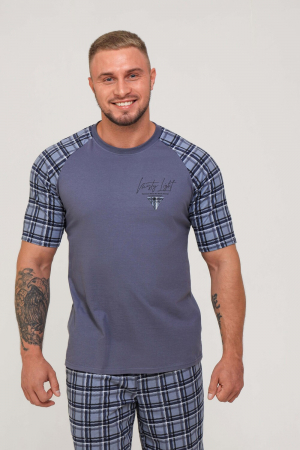 Домашний костюм мужской: футболка и шорты, отличный вариант как одежда для дома и сна. Выполнен в свободном крое, поэтому он не сковывает движения. На выбор представлена модель в больших и маленьких размерах. Футболка прямого кроя с коротким рукавом реглан и округлым вырезом, шорты с боковыми карманами. Мужская пижама с коротким рукавом - это отличный подарок для мужчины. В этом костюме ваш мужчина будет чувствовать себя комфортно и уютно.