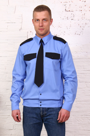 Рубашка охранника мужская на поясе, длинный рукав, два нагрудных кармана, погоны. Ткань - тиси. Легко утюжится, низкая сминаемость, износостойкая ткань. Размер по бедрам указан в положении стянутом резинкой - и в растянутом.