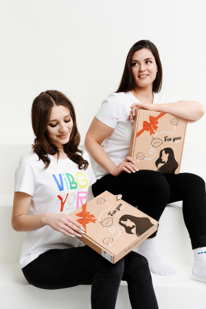 Подарочный набор СЕМИЦВЕТ. Представлен в 2 цветах. Женская футболка с принтом и носки с принтом подчеркнут вкус и чувство стиля. Подарочный набор упакован в крафтовую коробку с тематическим принтом. Футболка из хлопка и лайкры подойдет для повседневной носки и для выхода из дома. Футболку будет удобно носить навыпуск или заправлять, отлично сочетается с юбкой, брюками с джинсами, а также можно надеть под пиджак, жакет или кардиган. Футболка будет отлично сидеть практически на любой фигуре. Носки подойдут к любой одежде и обуви. Изготовлены из высококачественного хлопка, который отлично впитывает влагу, пропускает воздух и подходит даже для самой чувствительной кожи. Хорошо сохраняют форму и цвет, устойчивы к истиранию. Подарочный набор СЕМИЦВЕТ будет отличным подарком второй половинке, близкой подруге, маме или сестре. На моделях 42 и 48 размеры. Размер носков 23-25.