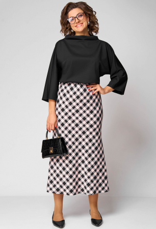 Комплект женский 2-х предметный (блузка, юбка).Блузка женская ,прямого силуэта, из трикотажного полотна , со спущенным плечом. Рукав "летучая мышь", 3/4 длины. Горловина цельнокроенная в виде стойки. Юбка по косой. Пояс на резинке. Отдельные части комлекта будут легко сочетаться с вещами из вашего гардероба.