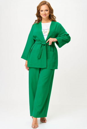 Комплект состоит из топа, брюк и жакета. Жакет и брюки выполнены из однотонной ткани. Топ выполнен из однотонной ткани, контрастной по цвету .