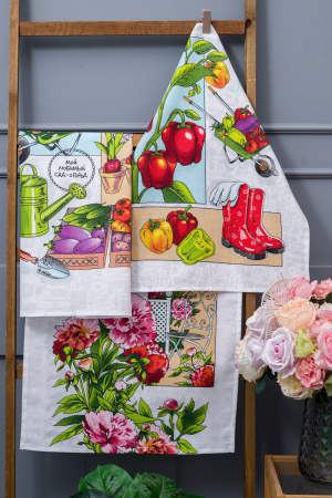 Набор кухонных полотенец Удачный сезон - это идеальное дополнение к вашей кухне. Этот набор из трех кухонных полотенец выполнен в белом цвете с яркими цветами и дачной атрибутикой, что придаст вашей кухне уют и теплоту.