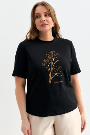 Футболка из кулирки с авторским принтом. Футболка прилегающего силуэта с круглой горловиной. Рукав втачной, короткий. Принт фактурный, “под золото”.